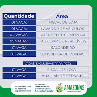 OBS: Desejável experiência, podendo ser avulsa, em vendas ou comércio em geral, ser residente do município de Itacoatiara, ter boa comunicação, conhecimento em informática, documentação completa e currículo atualizado.