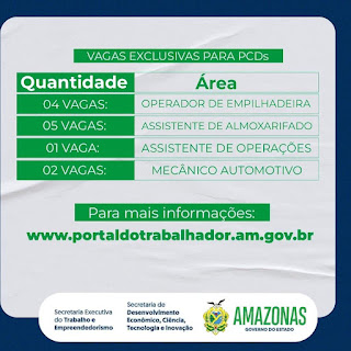 ✔️ O Sistema Nacional de Empregos do Amazonas (Sine/AM), divulga 175 vagas de emprego para esta quarta-feira (11/05/22).