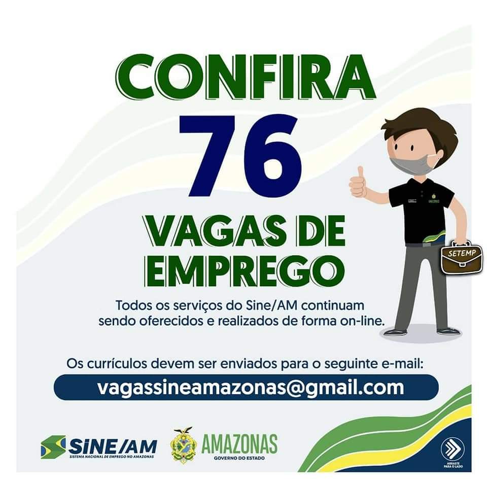 As oportunidades de emprego são de diversas empresas e instituições do Amazonas e os detalhes das vagas serão informados pelos empregadores.