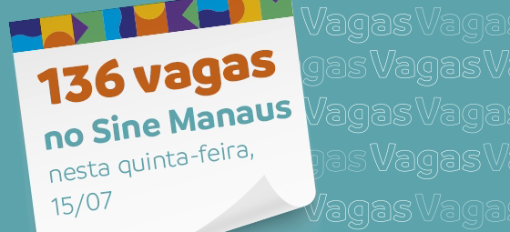 “A Prefeitura de Manaus oferta 136 vagas de emprego em várias áreas de atuação, nesta quinta-feira, 15/7, por intermédio do Sine Manaus.