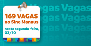 A Prefeitura de Manaus, por meio do Sine Manaus, oferta 169 vagas de emprego em várias áreas de atuação, nesta segunda-feira, 3/10, de 8h às 17h. O candidato precisa validar a Carteira Digital e Previdência Social (CTPS) no aplicativo “Carteira de Trabalho Digital” ou acessar o site http://gov.br/trabalho e para concorrer às vagas, deve acessar o site http://empregabrasil.mte.gov.br para fazer a solicitação de cadastro.