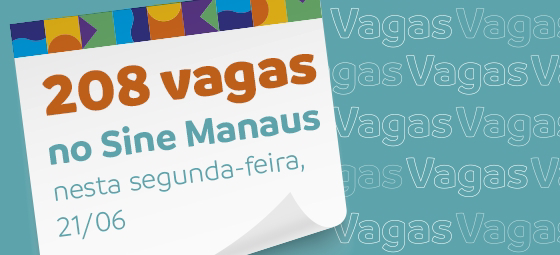 A Prefeitura de Manaus oferta 208 vagas de emprego em várias áreas de atuação, nesta segunda-feira, 21/06, por intermédio do Sine Manaus.