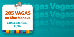 A Prefeitura de Manaus, por meio do Sine Manaus, oferta 285 vagas de emprego em várias áreas de atuação, nesta sexta-feira, 21/10, de 8h às 17h. O candidato precisa validar a Carteira Digital e Previdência Social (CTPS) no aplicativo “Carteira de Trabalho Digital” ou acessar o site http://gov.br/trabalho e para concorrer às vagas, deve acessar o site http://empregabrasil.mte.gov.br para fazer a solicitação de cadastro.