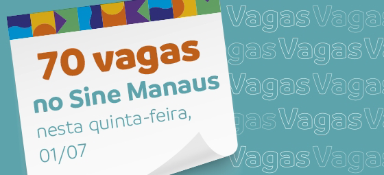 “A Prefeitura de Manaus oferta 70 vagas de emprego em várias áreas de atuação, nesta quinta-feira, 1/7, por intermédio do Sine Manaus.