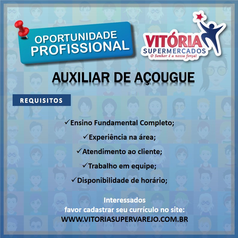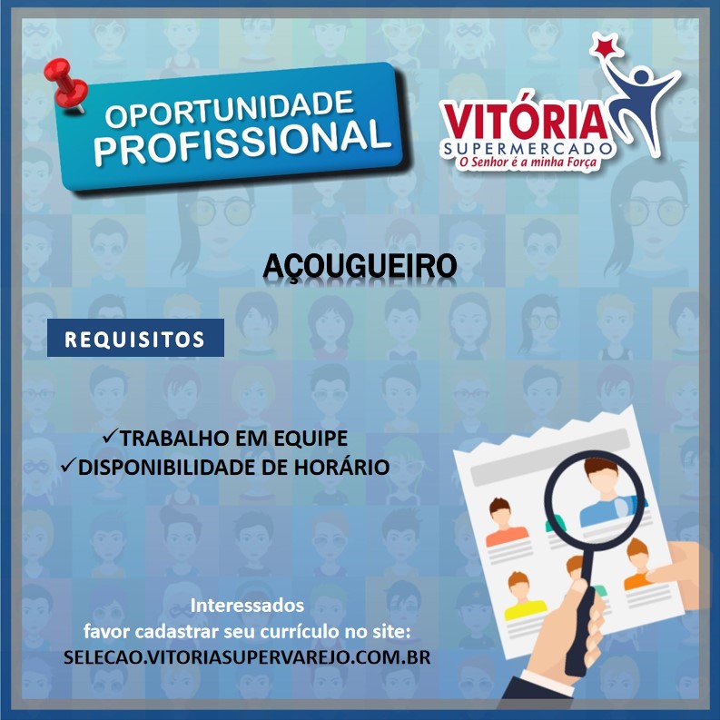 Supermercado Vitória está recrutando novos profissionais para compor seu quadro de funcionários!!!