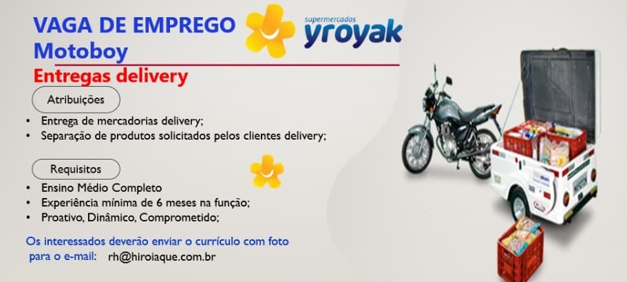 Supermercado Yroyak está recrutando novos profissionais para compor seu quadro de funcionários: