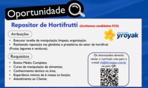 Supermercado Yroyak está recrutando novos profissionais para compor seu quadro de funcionários: