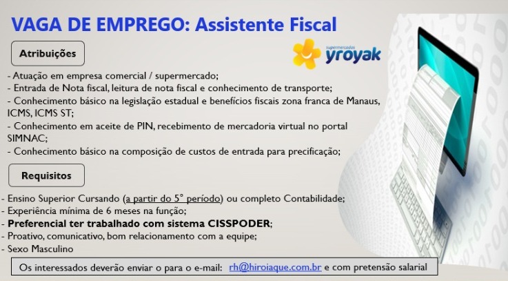 Supermercado yroyak está recrutando novos profissionais para compor seu quadro de funcionários: – Emprego Day – AM