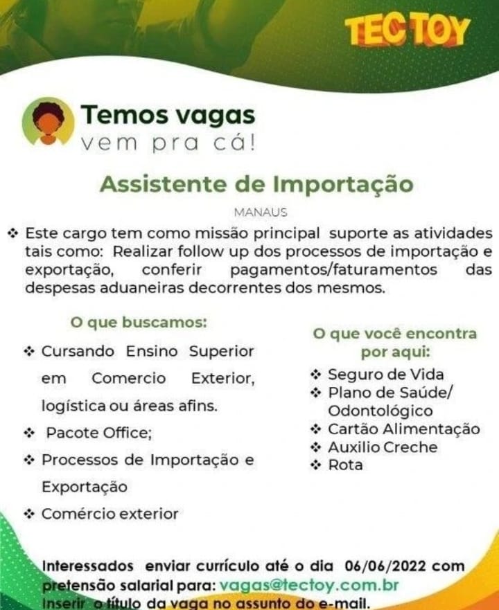 TEC TOY ESTÁ RECRUTANDO NOVOS PROFISSIONAIS PARA COMPOR SEU QUADRO DE FUNCIONÁRIOS: – Emprego Day – AM