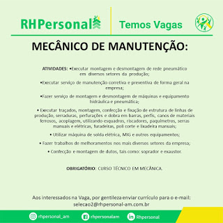 Preferencialmente resida na zona norte. Enviar currículos: