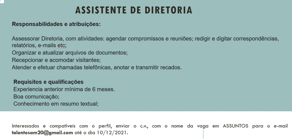 Mais informações sobre a vaga, somente por e-mail com os contratantes. Boa sorte !!!🍀