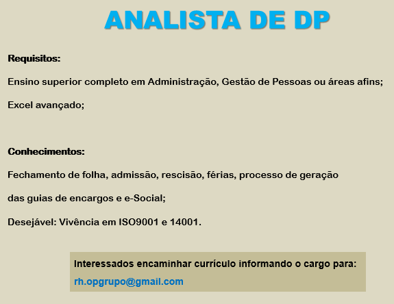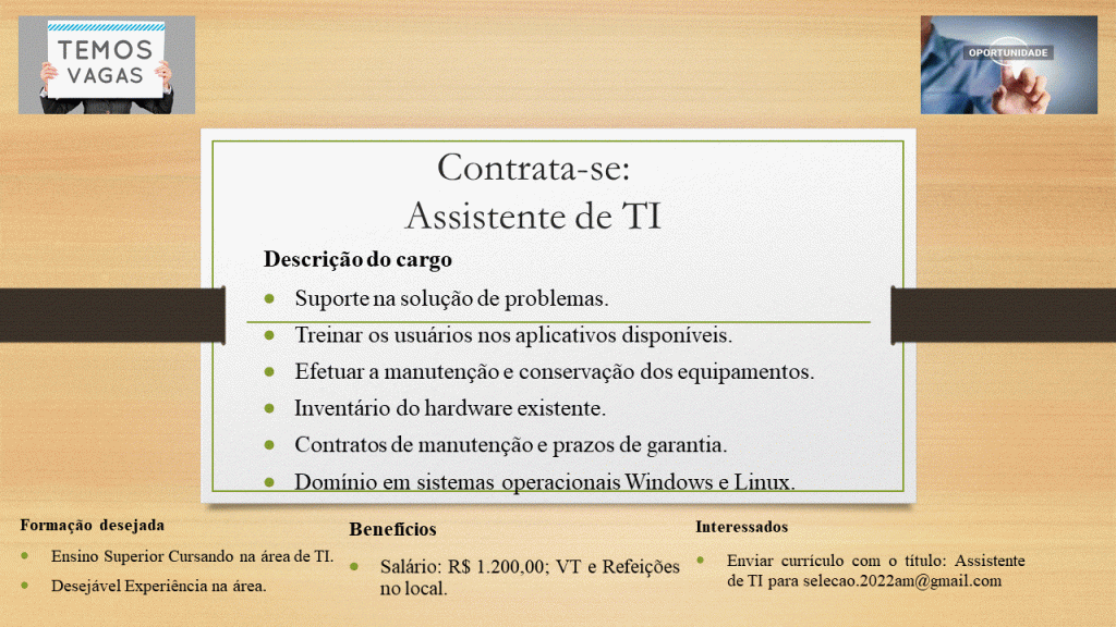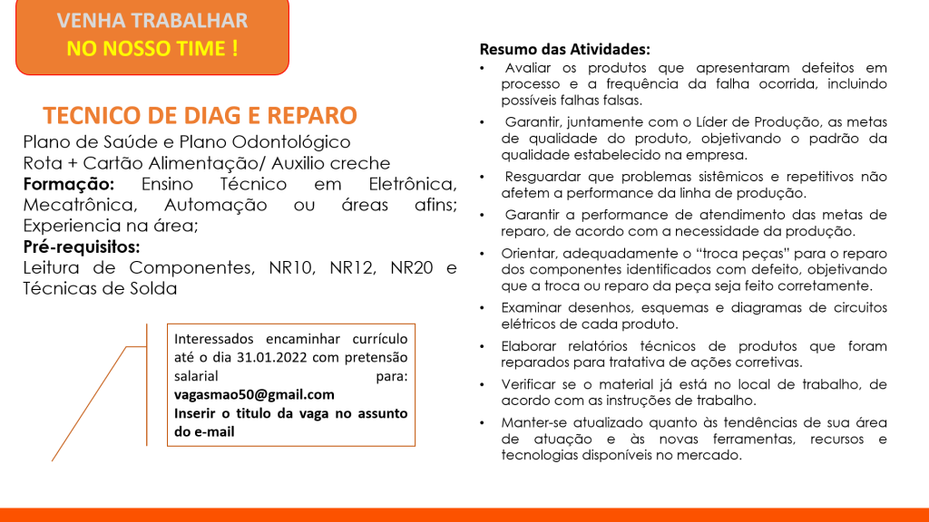 Mais informações sobre a vaga, somente por e-mail com os contratantes. Boa sorte !!!🍀