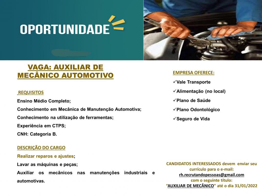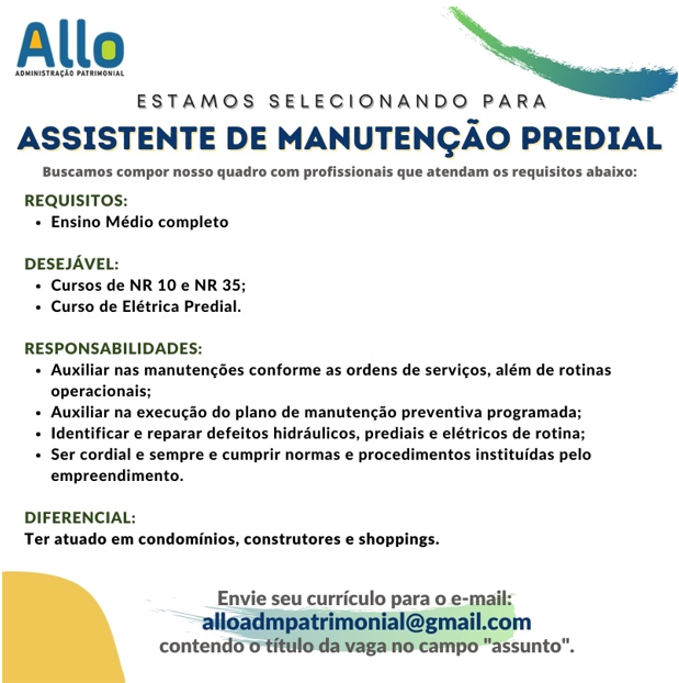Mais informações sobre a vaga, somente por e-mail com os contratantes. Boa sorte !!!🍀