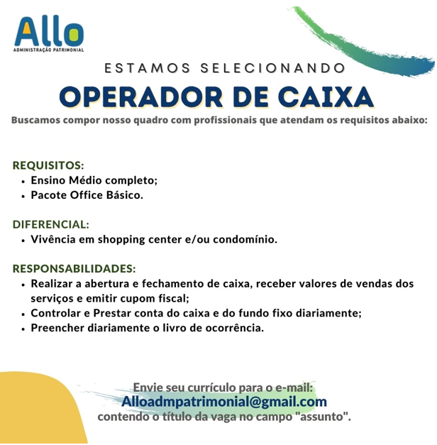 As vagas anunciadas e disponibilizadas neste site são repassadas por responsabilidade da empresa ou representante do RH. Não possuímos quaisquer vínculos com a empresa ou o anunciante. Temos o único objetivo de repassar para a população o benefício de visitar gratuitamente o nosso site, com o intuito de alcançarem o tão sonhado emprego.