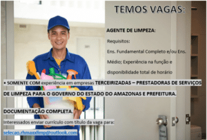 As vagas anunciadas e disponibilizadas neste site são repassadas por responsabilidade da empresa ou representante do RH. Não possuímos quaisquer vínculos com a empresa ou o anunciante. Temos o único objetivo de repassar para a população o benefício de visitar gratuitamente o nosso site, com o intuito de alcançarem o tão sonhado emprego.