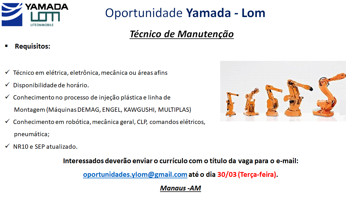 · Diferencial: Ter atuado em empresas da área de Operações Logísticas, locação de maquinários.