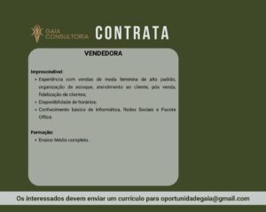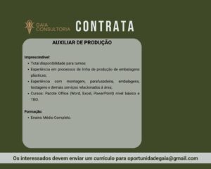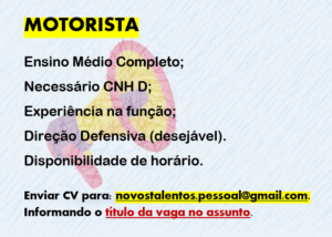As vagas anunciadas e disponibilizadas neste site são repassadas por responsabilidade da empresa ou representante do RH. Não possuímos quaisquer vínculos com a empresa ou o anunciante. Temos o único objetivo de repassar para a população o benefício de visitar gratuitamente o nosso site, com o intuito de alcançarem o tão sonhado emprego.