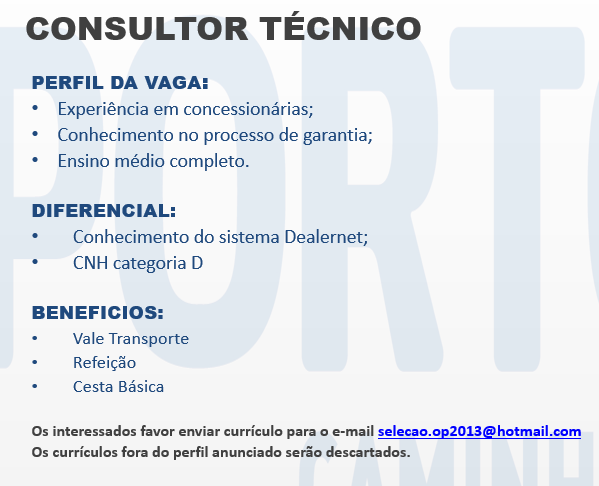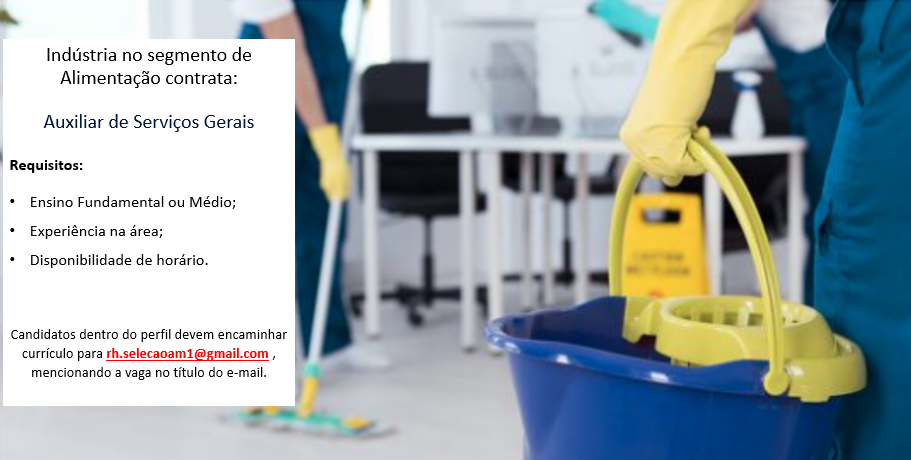 As vagas anunciadas e disponibilizadas neste site são repassadas por responsabilidade da empresa ou representante do RH. Não possuímos quaisquer vínculos com a empresa ou o anunciante. Temos o único objetivo de repassar para a população o benefício de visitar gratuitamente o nosso site, com o intuito de alcançarem o tão sonhado emprego.