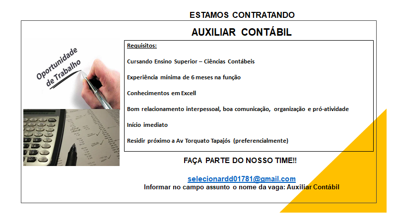 Mais informações sobre a vaga, somente por e-mail com os contratantes. Boa sorte !!!🍀