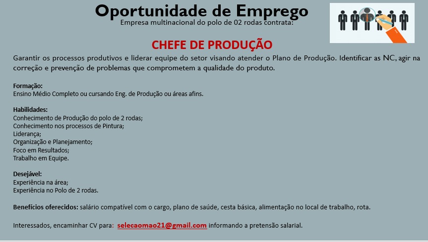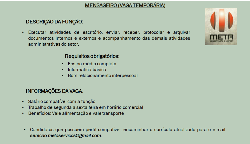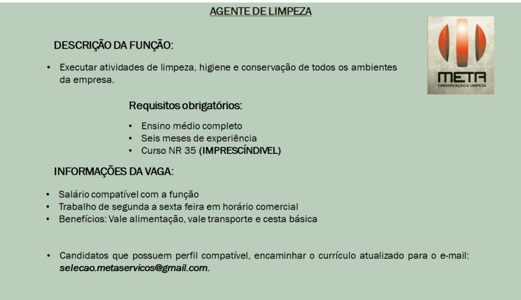 Vagas disponíveis: Encarregado de serviços gerais, Agente da limpeza, Auxiliar de serviços gerais, Chefe de Produção, Mensageiro …. Anúncios Related Posts 20 Vagas de Emprego Fáceis de Conseguir na Europa em Como Se Inscrever nas Vagas e Dicas para Aumentar Suas Chances de Ser Contratado na Europa Como se Registrar em Sites Internacionais que Pagam em Dólar ou Euro: Guia Completo para Iniciar Sua Renda Global anteriorSão diversas vagas disponíveis para hoje confira e participe da seleção….próximoFoto nascimento está recrutando profissionais para compor seu quadro de funcionários: