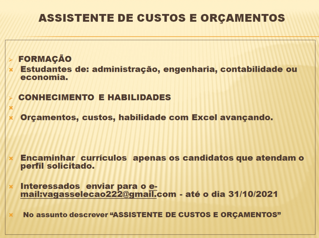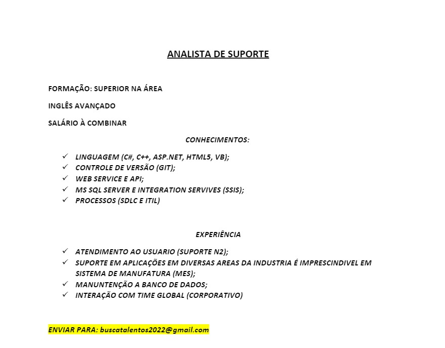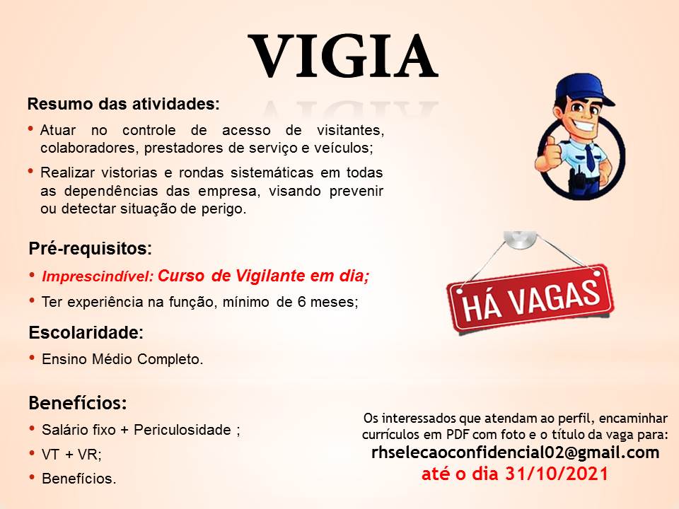 Mais informações sobre a vaga, somente por e-mail com os contratantes. Boa sorte !!!🍀