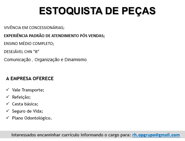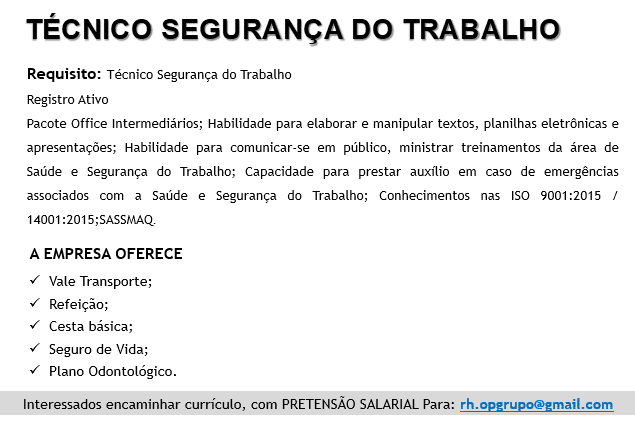 Mais informações sobre a vaga, somente por e-mail com os contratantes. Boa sorte !!!🍀