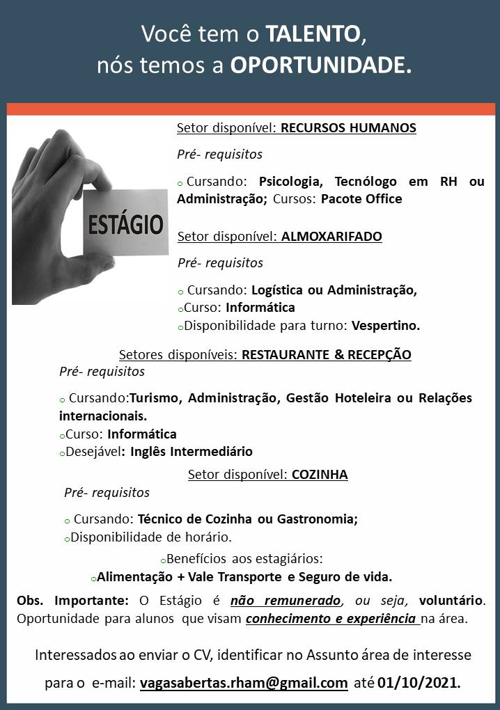Mais informações sobre a vaga, somente por e-mail com os contratantes. Boa sorte !!!🍀