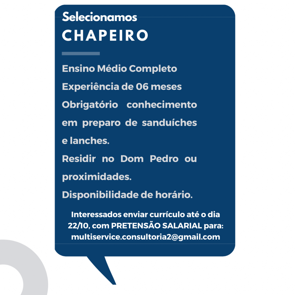 As vagas anunciadas e disponibilizadas neste site são repassadas por responsabilidade da empresa ou representante do RH. Não possuímos quaisquer vínculos com a empresa ou o anunciante. Temos o único objetivo de repassar para a população o benefício de visitar gratuitamente o nosso site, com o intuito de alcançarem o tão sonhado emprego.