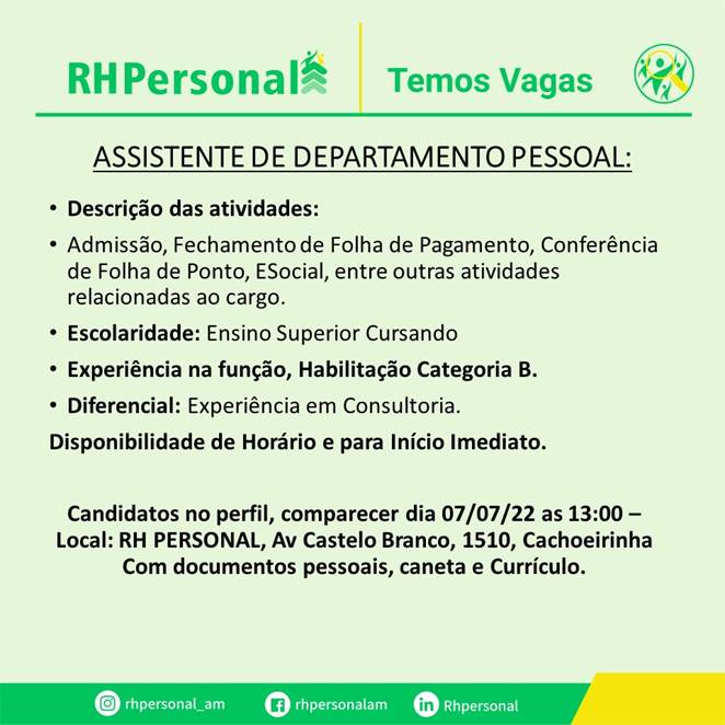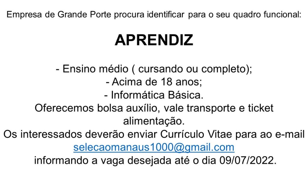 Vagas disponíveis para hoje confira e participe da seleção: – Emprego Day – AM
