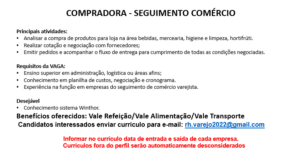 As vagas anunciadas e disponibilizadas neste site são repassadas por responsabilidade da empresa ou representante do RH. Não possuímos quaisquer vínculos com a empresa ou o anunciante. Temos o único objetivo de repassar para a população o benefício de visitar gratuitamente o nosso site, com o intuito de alcançarem o tão sonhado emprego.