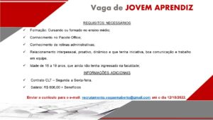Mais informações sobre a vaga, somente por e-mail com os contratantes. Boa sorte !!!🍀