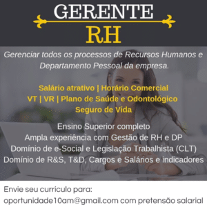 VAGAS disponíveis para hoje confira e participe da seleção: – Emprego Day – AM