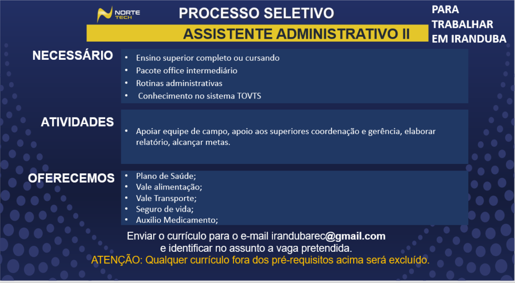 ATENÇÃO: Nunca pague nenhum valor para participar de um processo seletivo. Não compre cursos, apostilas ou serviços que prometam participação em seleção ou contratação para uma vaga. E jamais informe dados bancários, de cartão ou envie documentos por e-mail ou através de sites que não conheça.