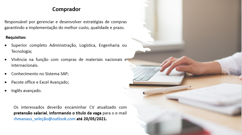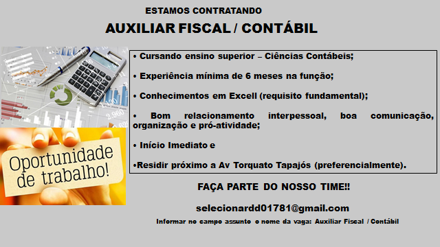 Vagas disponíveis para hoje: Gerente de Loja, Comprador, Auxiliar fiscal contábil, Auxiliar administrativo – Emprego Day – AM