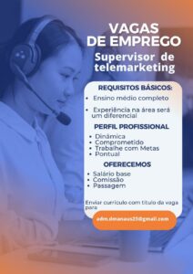 As vagas anunciadas e disponibilizadas neste site são repassadas por responsabilidade da empresa ou representante do RH. Não possuímos quaisquer vínculos com a empresa ou o anunciante. Temos o único objetivo de repassar para a população o benefício de visitar gratuitamente o nosso site, com o intuito de alcançarem o tão sonhado emprego.