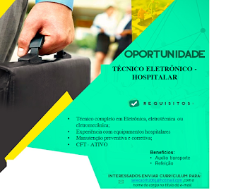 Candidatos com o perfil solicitado, encaminhar currículo para o e-mail: