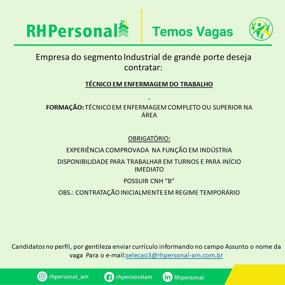 Veja as vagas disponíveis para hoje e participe da seleção!!! – Emprego Day – AM