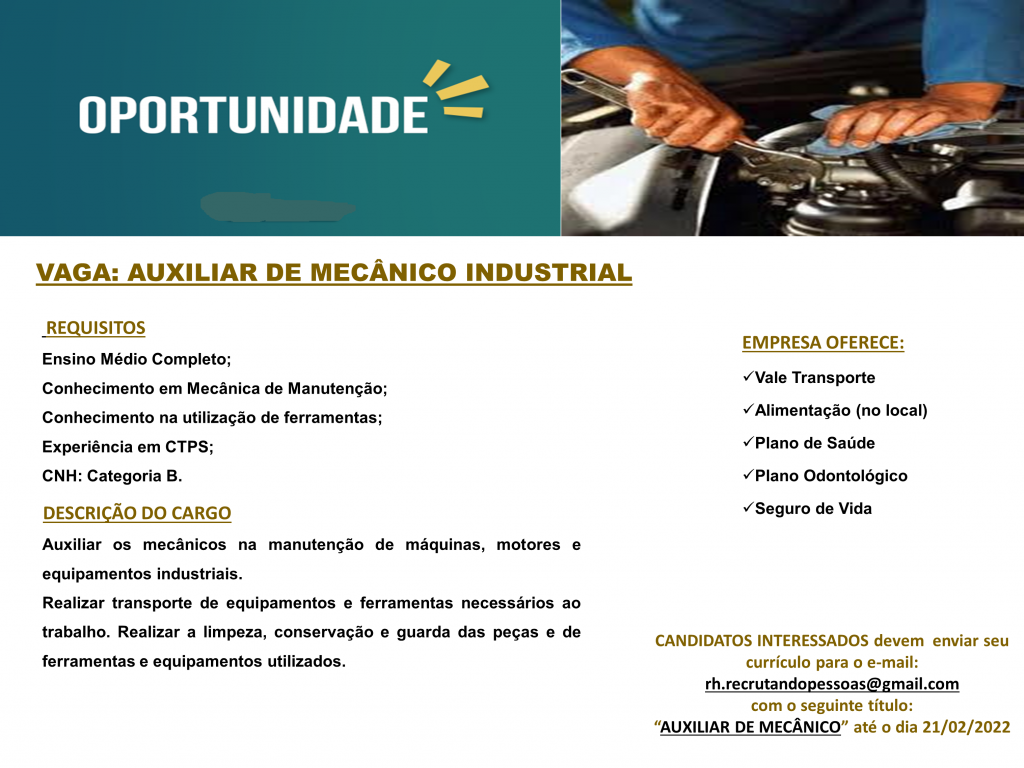 Mais informações sobre a vaga, somente por e-mail com os contratantes. Boa sorte !!!🍀