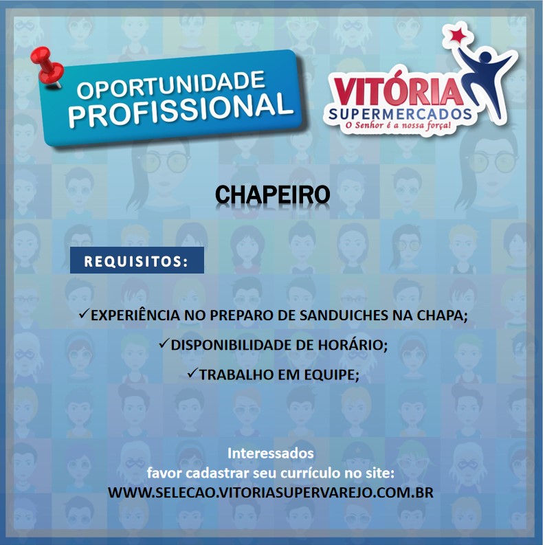 Vitória supermercado está recrutando novos profissionais para compor seu quadro de funcionários: